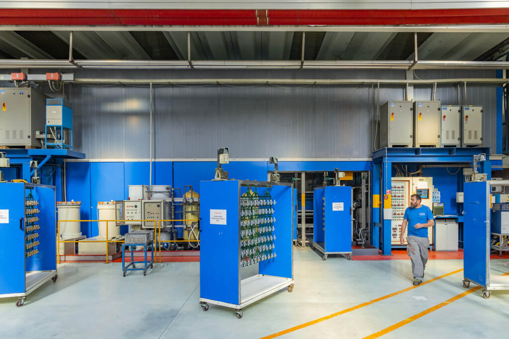 Grazie ai nostri numerosi impianti siamo in grado di offrirti molteplici lavorazioni: pulitura e smerigliatura metalli, sgrassaggio oltre che la spalmatura su rame. La galvanica è gestita con due linee che rappresentano il cuore della nostra produzione. Due sono anche gli impianti di verniciatura automatica.